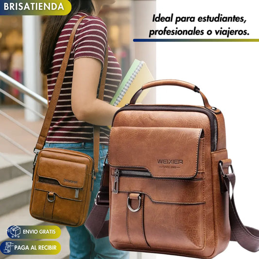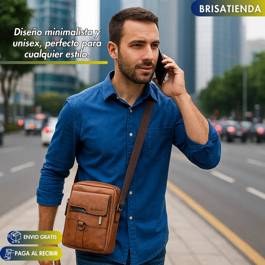 66% DESCUENTO!Bolso Vintage Unisex Cuero Sling + Billetera Obsequio
