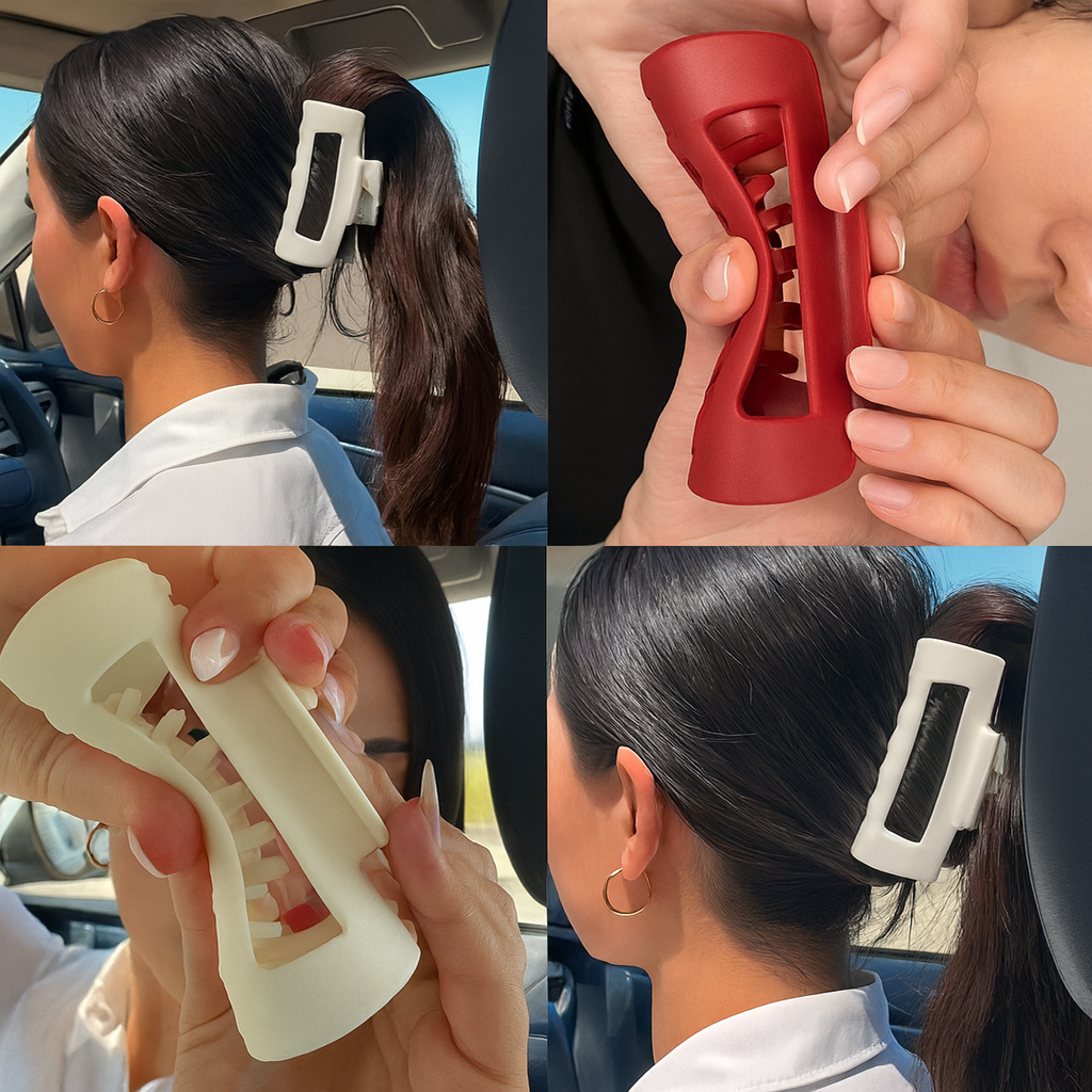 Olvídate del dolor y de las pinzas incómodas. La Pinza de Silicona Anticolisión fue diseñada para cuidar tu cabeza, tu cabello y tu comodidad incluso mientras manejas o descansas.